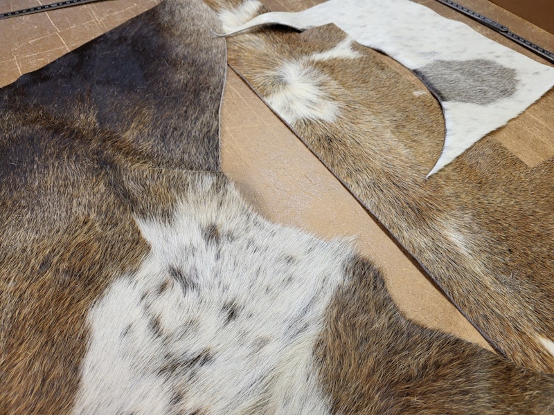 Man bekommt immer genau die abgebildeten Kuhfell Stücke.